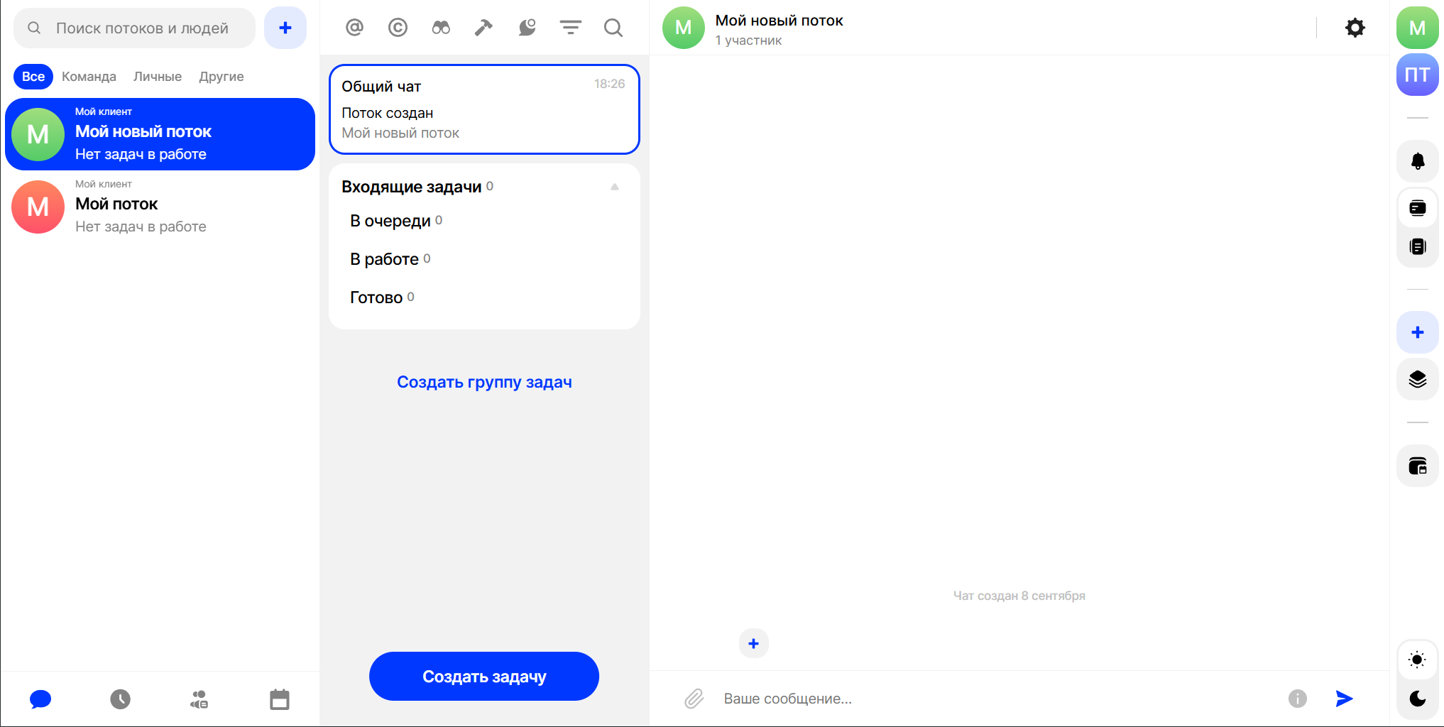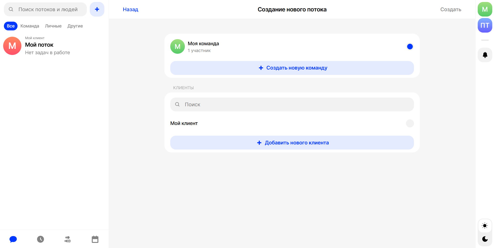 Также сразу можно добавить пользователей в создаваемый поток, для этого нужно нажать на кнопку “+ Добавить пользователей”: